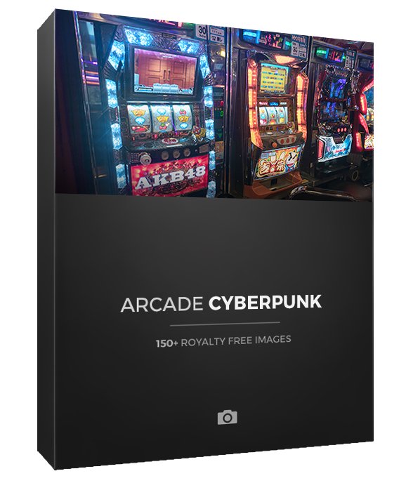 A cyberpunk themed collection of Japanese arcade tech and game machines, which are characterized by its bright neon lights and futuristic interface designs.